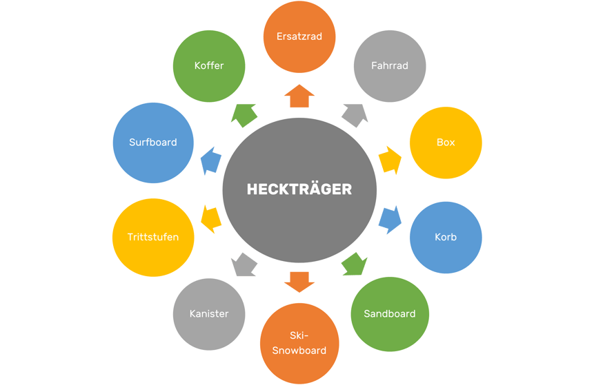 Ob Fahrradträger, Ski- und Snowboardhalter, Surfboard- oder Sandboardhalter, Boxen, Körbe, Kanister, Ersatzrad oder Trittstufen: Das modulare WEOMA Baukastensystem ist mit allen gängigen