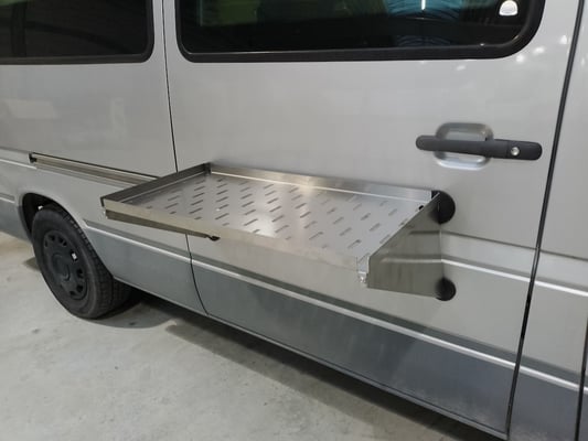 Haftet sicher an der Seitenwand, ideal als Ablage für Gaskocher, Grill oder Werkzeug.