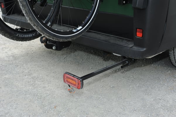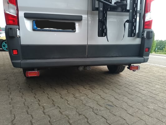 ACHTUNG: Wenn durch den Fahrradträger oder die aufgenommene Ladung die Fahrzeugrückleuchten oder das Kennzeichen teilweise oder vollständig verdeckt werden, muss die Fahrzeugbeleuchtung und/oder das KFZ-Kennzeichen wiederholt werden.